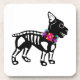 Boston Terrier Skeleton with a colorful flower collar in red, yellow, green and purple. Black silhouette with white bones. Transparent background for customized color. Add text option to personalize it.