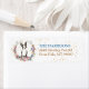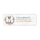 The left side of these return address labels feature an image of a spring flower wreath in colors of soft pink, blue, gold, green and cream. At the center is a beautiful watercolor portrait of an adorable Boston Terrier dog. Tiny gold confetti gives a subtle sparkle to the background. Your custom text is in blue and brown gold at the right.