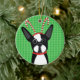 Whimsical Dog Art Boston Terrier wearing a candy cane headband Christmas ornament