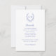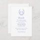 This elegant wedding details card features a white background with a monogram surrounded by a botanical crest/frame with a ribbon in blue. Personalize it for your needs. You can find matching products at my store.