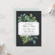 Vintage botanical engagement party invitation displays your party details uniquely arranged in inky off-black block and calligraphy lettering, on a background of painted green watercolor leaves, branches, ferns and foliage. A rich, inky off-black background adds dramatic, elegant appeal. Invitations reverse to solid sage green.