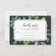 Elegant botanical RSVP card features green watercolor leaves and foliage in a vintage style, framing your desired RSVP date and custom accept and decline wording. A rich off-black background adds dramatic appeal. Designed to match our Botanica Night invitation collection.
