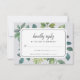 Elegant botanical RSVP card features green watercolor leaves and foliage in a vintage style, framing your desired RSVP date and custom accept and decline wording. Soft grey cards reverse to deep forest green. Designed to match our Botanica invitation collection.