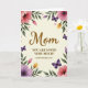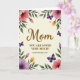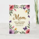 Designed with a creamy, softly glowing background, this card centers on a warm Mother’s Day message framed by a graceful ring of flowers and leaves ❤️. The main line sits in the middle in flowing golden-brown lettering, drawing the eye first, while a smaller line of text rests just below in a neat serif style. Around the words, large blossoms in soft pink and gentle lavender lean inward like a caring embrace, with tiny yellow and pale pink buds tucked between them 🌼. Green leaves weave through the border, and the petals look lightly washed, as if painted with water and left to dry in spring air. A few deep purple winged insects drift among the blooms, adding a quiet sense of motion, like a soft flutter near someone you love. Fine speckles of pink and gold are scattered across the design, giving the border a light, airy sparkle. The floral frame forms a loose rectangle around the centered text, with the richest purples and brightest pinks clustered near the corners.