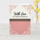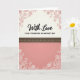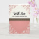 This card features a tall, vertical layout in soft warm tones that feels like a gentle hug ❤️. The top third sits on a creamy background, with thin reddish-pink botanical line art curling in from the corners, as if two bouquets are leaning toward each other. Centered near the top, the main phrase “With Love” appears in black flowing lettering, with a smaller, neat black line of text placed just beneath it. A wide dark brown band stretches across the card as a divider, edged with slim golden lines and sprinkled with small golden dots that resemble tiny lights. Below, the lower section shifts into a calm coral-pink field, giving the design room to breathe and making the message area feel inviting. White floral outlines bloom from the bottom corners and echo the top, creating a quiet, romantic symmetry 🌼. The very bottom remains mostly open, framed by those white leaves and blossoms reaching inward from both corners.