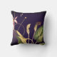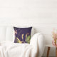 Modern floral throw pillow features a minimalist botanical print in a deep eggplant color palette with pink, green and gold colored accents.