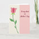 The front design shows a vertically split layout that balances a floral illustration with a simple message area. On the left, a stylized tulip-shaped bloom opens in a gentle gradient from blush pink to fuchsia, edged with a thin white outline that gives it a soft, affectionate look ❤️. A curved emerald-green stem rises with two pared-down leaves, set on a muted cream background filled with faint diagonal stripes that add texture without stealing attention. On the right, a smooth pastel pink panel creates calm space, like a quiet pause in a close relationship. The words “To my Aunt on Mother’s Day” sit centered on that pink side in deep burgundy, written in flowing cursive lettering that feels like a warm note shared between family 🌼. The text is the main focus on the right, with generous margins around it so the message can breathe. The overall palette stays within creamy white, multiple pink tones, and green, with the tulip on the left and the burgundy lettering on the right.