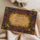 An elegant Mardi Gras design inspired by classic masquerade aesthetics, featuring ornate scrollwork, rich jewel tones, and refined carnival details. The vintage artwork creates a luxurious, old-world atmosphere perfect for sophisticated Mardi Gras celebrations, formal parties, or themed soirées. Text is fully customizable to suit your event details.