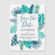 Modern blue green botanical Save the Date magnetic card for a beach or outdoor summer ceremony. This beautiful invite features wild palm leaf foliage surrounding a white rectangle. Perfect tropical destination magnets for a Hawaiian island event.