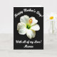 This card features a large white tropical flower centered against a deep black background, creating a dramatic contrast that pulls your eyes right to the petals. The petals look softly ruffled and gently folded, with light catching along their edges like a quiet, intimate glow ❤️. In the middle, a tall lime-green stalk rises upward, topped with small orange tips that feel like a warm spark in the darkness. The dark setting around it gives the bloom a private, spotlighted feel, like a tender moment shared between two close hearts. Curving white lettering wraps around the floral image, placed along the upper and side areas so it frames the flower without covering it. The text is thin and flowing in bright white, echoing the smooth lines of the petals and keeping the message easy to notice. Near the lower portion, the black background stays mostly open, letting the white bloom and its green-and-orange center stand out clearly 🌼. The central stalk is lime green, and the clustered tips are a fiery orange right above the flower’s pale center.