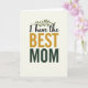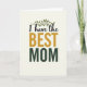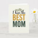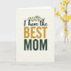 Designed with a soft cream background, this card centers a loving message that feels like a close hug ❤️. Near the top, a slim botanical branch in deep green stretches gently above the words, like a quiet sign of steady care and growing closeness. Just below, the small opening phrase “I have the” appears in dark, flowing lettering, set to lead your eye downward. The word “BEST” sits in the middle in large uppercase letters colored goldenrod, giving it a sunny, affectionate emphasis. Under that, “MOM” is placed in sturdy uppercase forest green, echoing the leafy branch and adding a grounded, supportive feel. The mix of graceful curves and strong straight letters creates a tender contrast, like someone speaking softly while standing firmly beside you 🌼. The branch’s thin stem and narrow leaves arc lightly over the top line of text on the cream field.