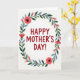 Designed with a soft off-white background, this card centers a loving message in rounded, thick crimson letters that feel warm and close ❤️. The text sits right in the middle, leaving airy space around it so the words stand out without crowding the design. A full wreath of flowers and leaves circles the message, like a gentle embrace that suggests closeness and care between giver and receiver. Large open blooms in coral and soft pink show dark, nearly black centers, adding depth and a slightly dramatic contrast. Between them are smaller buds and spiky red accents that add movement, like little sparks of affection 🌼. The greenery shifts from deep forest tones to lighter sage, with a few muted blue-green leaves that keep the ring feeling fresh and springlike. The overall look is modern yet softly drawn, with tiny natural variations in the petals and leaves that make it feel human and tender. The floral ring is evenly spaced around the centered crimson wording, with coral-pink blossoms at the top and bottom and clusters of layered green leaves along the sides.
