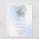 Set the tone for a stylish and unforgettable celebration with this watercolor blue and gold wedding invitation, designed around today’s most trendy wedding color palette. Featuring soft pastel, powder, light, and pale blue hydrangeas, paired with fresh eucalyptus greenery and elegant gold floral accents, this design captures modern romance with timeless appeal.