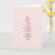 Designed with a serene botanical illustration, this card features a slender plant drawn in thin, flowing lines of deep reddish-brown that feels gently affectionate ❤️. Long, narrow leaves rise from a simple horizontal stroke, and a few leaves include tiny dotted accents that add a soft, caring detail. Several small buds reach upward, suggesting a quiet moment of growing love and closeness, like a tender gesture shared without words. The background is a pale blush pink wash that keeps the scene calm and warm, leaving plenty of open space around the plant. Beneath the illustration, a short Mother’s Day message sits centered near the lower portion of the front, written in a flowing cursive-style font. The text matches the plant’s reddish-brown tone, standing out clearly against the pink while keeping the look gentle and cohesive 🌼. The buds cluster near the top of the stem, with the tallest one leaning slightly to the right.