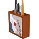 Keep your desk neat and tidy with a customized desk organizer. Showcase your favorite artwork, photos, or text on the front and back of this mahogany wood finished desk piece. Great for keeping clutter contained!