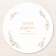 Botanical Boho flowers Script baby shower Round Paper Coaster