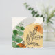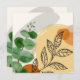 Botanical boho design with green, orange, and beige colors and watercolor elements.