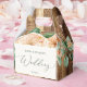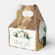 Beautiful wedding gable favor boxes decor to share your special day with your guests. These classic custom printed treat boxes are perfect to decorate your reception or ceremony space and delight your guests with thank you party gifts, sweets, and treats. Soft pastel tones and greenery modern watercolor florals in shades of peach, white, cream ivory, sage and a brighter deeper green. This personalized event supplies accessory coordinates with our full botanical boho floral collection of stationery and event paper goods.