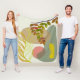 Botanical boho design with magenta, green, yellow, and brown colors and floral elements.