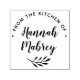 Perfect for labeling your delicious home baked goodies, this personalized stamp features "from the kitchen of" and your name in modern calligraphy script lettering with a botanical branch accent.