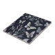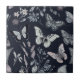 A detailed botanical butterfly ceramic tile for home decor. This elegant decorative tile features beautiful butterflies on a dark purple background with botanical flowers and plants.