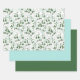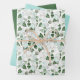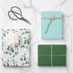 These sheets have one sheet with a modern watercolor of heart-shaped leaves in eucalyptus colors. The other two sheets have solid colors which are in the art. The colors are summery green, turquoise, teal and dark green. Botanical Celebration Green Wrapping Paper Sheets.