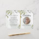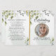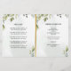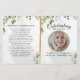 Customize this modern, elegant funeral program with your own photo and text to create a special tribute to your Beloved. An 'In Loving Memory' program featuring Floral Foliage botanical and gold accent memorial program. On the front cover is a photo of your loved one, their name, dates, the memorial venue, and the date of the event. On the inside is an obituary and order of service, and on the back is a thank you note and the venue of the