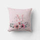 Botanical chic floral elegant plants foliage grey blush pink flower monogram throw pillow .