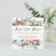 These elegant holiday wedding save the date cards feature rustic watercolor flowers with pinecones, branches, berries, leaves, and white roses and lovely calligraphy.