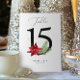 Theme Parties' holiday botanical table numbers design features hand-painted watercolor botanicals and a pretty red poinsettia. The modern simple design is set on a crisp white background and accented with matching gold speckles. #Christmas #Holidays #HolidayParty