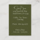 This business card has a vintage design of a coffee bean stem. Rich colors of burgandy and olive green on a white background. The back has a coordinating olive green background. I've included templates on the front and back for your own information and personalization. There are several paper options available, be sure to compare the thickness and gloss that would be right for your business. All items are filled by Zazzle and are 100% satisfaction guaranteed. For your order and shipping issues, please contact Zazzle's Customer Support via https://goo.gl/nCgptf