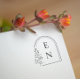 A timeless, classic, and elegant custom botanical wedding monogram crest stamp with a modern minimal aesthetic. Classic elegant monogram crest. This custom stamp will add an eye-catching addition to wedding invitations, letters, napkins or anything for a special occasion. They’re sleek, can add character to stationary, invitations and thank you cards. Custom monogram stamps are a classic touch that will never go out of style.