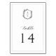 Botanical Crest monogram, wedding table number. Vintage inspired crest adorned with botanical branches. Features, elegant and classy black typography design style mix of script and bold type. Please note that table number cards must be ordered individually.