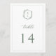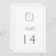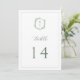 Botanical Crest monogram, wedding table number. Vintage inspired crest adorned with botanical branches. Features, elegant sage green typography design style mix of script and bold type. Please note that table number cards must be ordered individually.