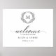 Elegant Black and White Botanical Crest Monogram Wedding Welcome Sign.