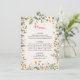 Botanical Daffodils Daisy Peony Flowers Wedding Menu