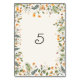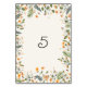 Botanical Daffodils Daisy Peony Flowers Wedding Table Number