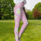 A pink legging with a pattern of botanical daisy flower illustration in pastel colors (Leucanthemum vulgare): a perfect gift for a lover of flowers. Daisy is the April birth flower and is symbolic meanings of kindness, purity, innocence, joy and cheerfulness.
