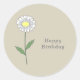 A light brown sticker with a botanical daisy flower illustration in pastel colors (Leucanthemum vulgare) and customizable text such as "Happy Birthday" or "Thank You": perfect for birthday friends, wedding, small business, lovers of flowers, etc. Daisy is the April birth flower and is symbolic meanings of kindness, purity, innocence, joy and cheerfulness.