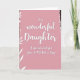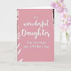 This card features a soft rose-pink background with a faint grid-like texture that feels gentle and intimate ❤️. Centered near the top, the words “To a wonderful Daughter” appear in flowing white lettering with a slight shadow that lifts it off the page. Just below, a smaller line reads “A special wish for you on Mother’s Day,” also in white, placed neatly under the main message. Along the left side, a vertical border of white leafy stems rises upward, like a quiet bouquet offered with affection 🌼. The right edge looks like torn paper, exposing a darker brown-black layer beneath for a cozy, timeworn contrast. The calm blush-and-white palette, paired with that rough edge, creates a sweet mix of softness and closeness, like a gentle hug in paper form. The lighting looks even and diffused, keeping every detail easy on the eyes. A jagged, uneven tear runs down the right side, revealing the deep earthy strip underneath.