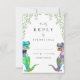 Bring a roar of excitement to your wedding day with this colorful Dinosaur wedding RSVP response card, featuring a playful T-Rex bride and groom surrounded by watercolor botanical greenery. With whimsical, modern typography and easy-to-personalize templates, this card captures the fun spirit of your prehistoric love story. The unique psychedelic T-Rex design, rendered in pink purple green blue orange and yellow and eucalyptus green hues, is a charming blend of playful romance and nature, all brought to life by the talented artist Catherine Sweetman. Perfect for your wedding reception or rehearsal dinner, this RSVP card is part of a complete wedding suite that provides everything you need to make your wedding as memorable and joyful as your love. Let this fun and creative design set the tone for your dino-themed celebration!