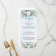 Pair with matching invitations, place cards, and table numbers for a cohesive, stylish look. Make your reception unforgettable with this dusty blue and gold floral menu — the perfect finishing touch for your elegant wedding day.