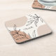 This modern coaster features earth tone splashes with simple botanical line art and your name in pretty script typography.