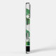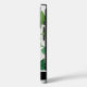 This image showcases a phone case adorned with a beautiful botanical design. The case features detailed illustrations of green leaves and branches on a light background, creating a fresh and natural appearance. At the bottom of the case, there is a black band with the name "Elizabeth" written in white, adding a personal touch to the design. you can easily remove the name and any other elements you don't like from within the design tool, crafting your perfect bespoke mobile phone protector.
