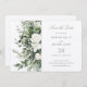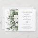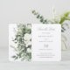Introduce your upcoming nuptial celebration with this exquisite 'Save the Date' card, showcasing a stunning botanical design. The card features a captivating array of white roses nestled amongst an assortment of eucalyptus leaves and a medley of green foliage, rendered in a palette that includes shades of alabaster, sage, jade, and hints of olive. The elegant script and clean typography complement the naturalistic grace of the floral illustration, offering a harmonious blend of contemporary style and classic botanical imagery.