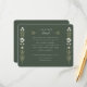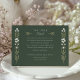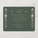This exquisite wedding information card features a rich hunter green background, bordered by a symmetrical column of delicate floral illustrations in cream and green tones. The centerpiece of the card is the elegantly scripted title "The Finer Details," inviting guests to learn more about the wedding day specifics. The botanical illustrations evoke a serene natural setting, ideal for couples who appreciate the beauty of flora and the great outdoors. The use of gold accents against the dark green provides a touch of sophistication and luxury. This card is not only a practical addition to your wedding suite but also a keepsake that embodies the thoughtfulness and beauty of your special day.