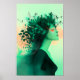 A quiet, dreamy moment captured in soft emerald tones. This serene botanical portrait blends delicate femininity with nature-inspired beauty, creating a peaceful and effortlessly pretty statement for your space.