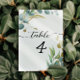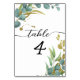 The word "table" is in calligraphic style and the corresponding number is surrounded by nature. Simulated gold glitter.