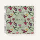 This Botanical Floral Hummingbird Pattern Sage Green Notebook custom hardcover notebook features a hummingbird and floral pattern with hand-drawn exotic flowers, birds, and foliage on the front and back covers, all on an elegant sage green background. Personalize with your monogram and name for a unique touch. Available with blank, wide-ruled, or college-ruled pages and your choice of spiral color.