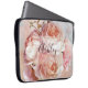 BOTANICAL FLORAL PEONY Name Monogram computer sleeve - Perserve your computer in style with this gorgeous design featuring a beautiful bouquet of pink roses and peony, over a beautiful pink and blue watercolor background. An elegant, white screened layer bordered by an inner faux gold leaf stroke frames the name, in beautiful gray script typography. This design is easily customized and makes a great gift for her.